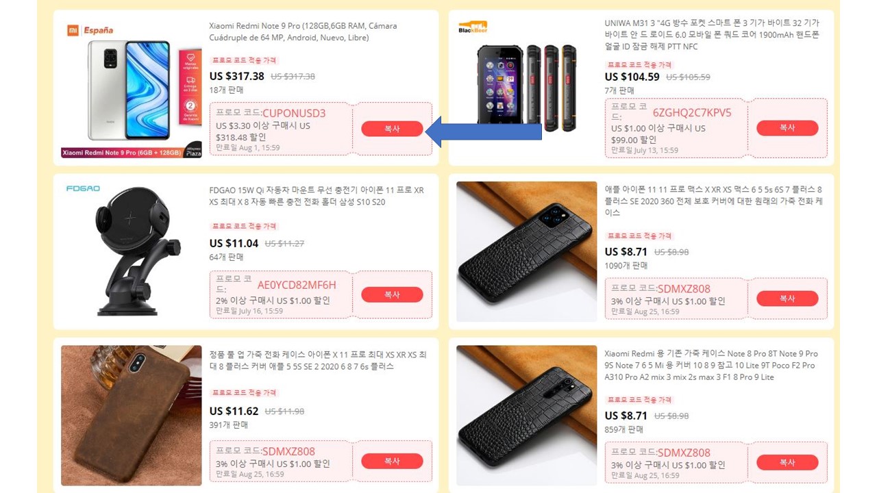 알리익스프레스는 프로모션 코드와 프로모션 쿠폰을