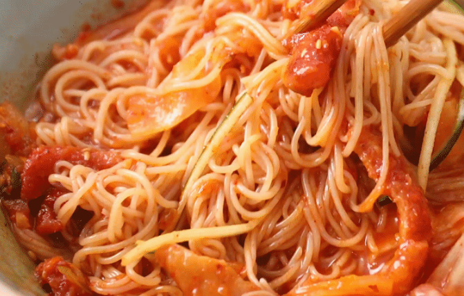 매콤달콤한 명태회무침과 면발의 조화