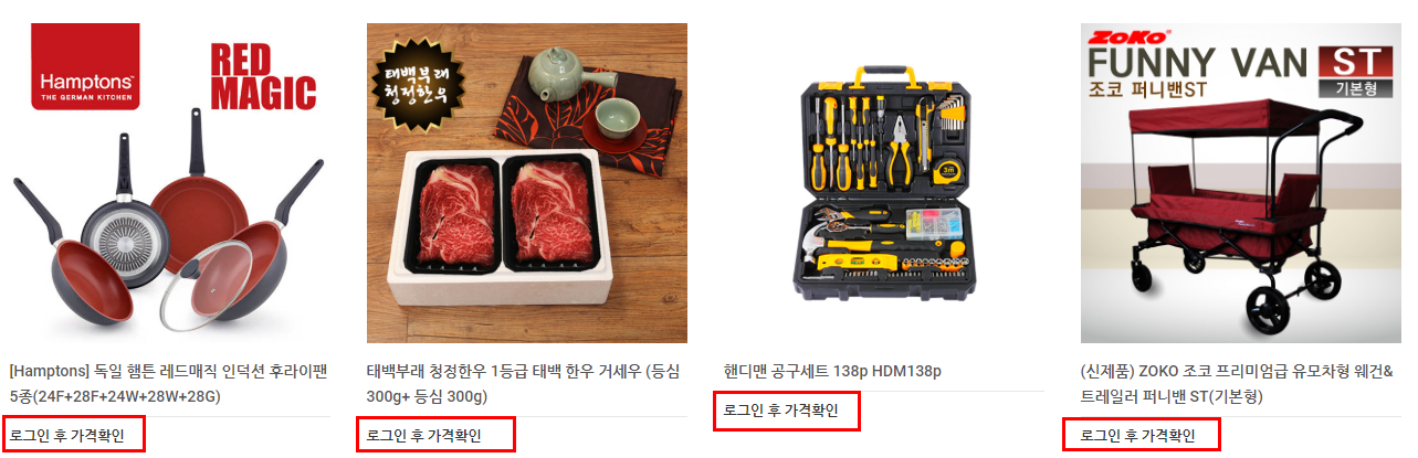 회원전용으로 운영되는 종합쇼핑몰로 회원이 아닌 분들에게는 가격 노출이 불가하고,