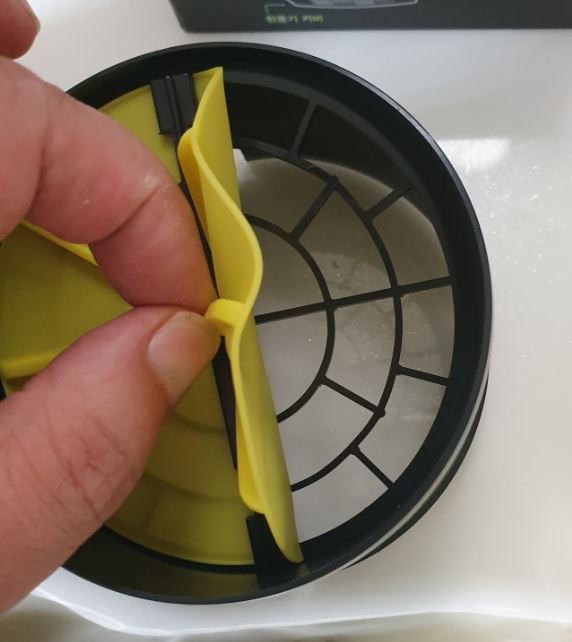 실리콘 재질이 평소에는 빈틈 없이 막아주다가 환풍기가 작동 될때 환풍기 바람의 힘의 의해서만
