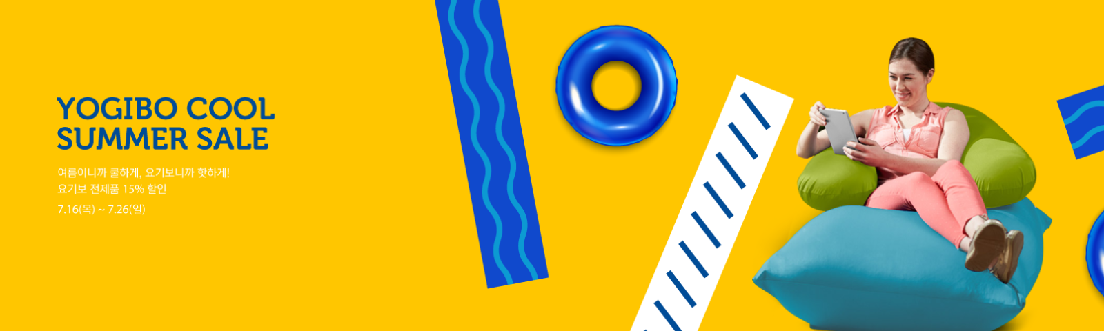 요기보 쿨 썸머세일은 7월 26일까지 전제품을 15% 할인하는 이벤트 행사에요.