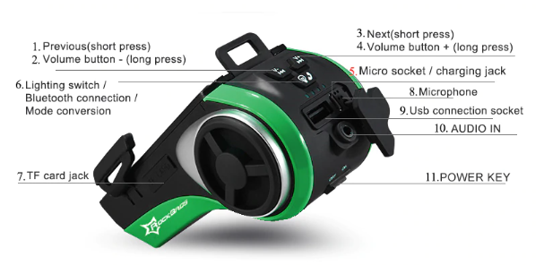 *블루투스 V4.0+스피커+파워뱅크+바이크 라이트+바이크벨+아이폰 브래킷