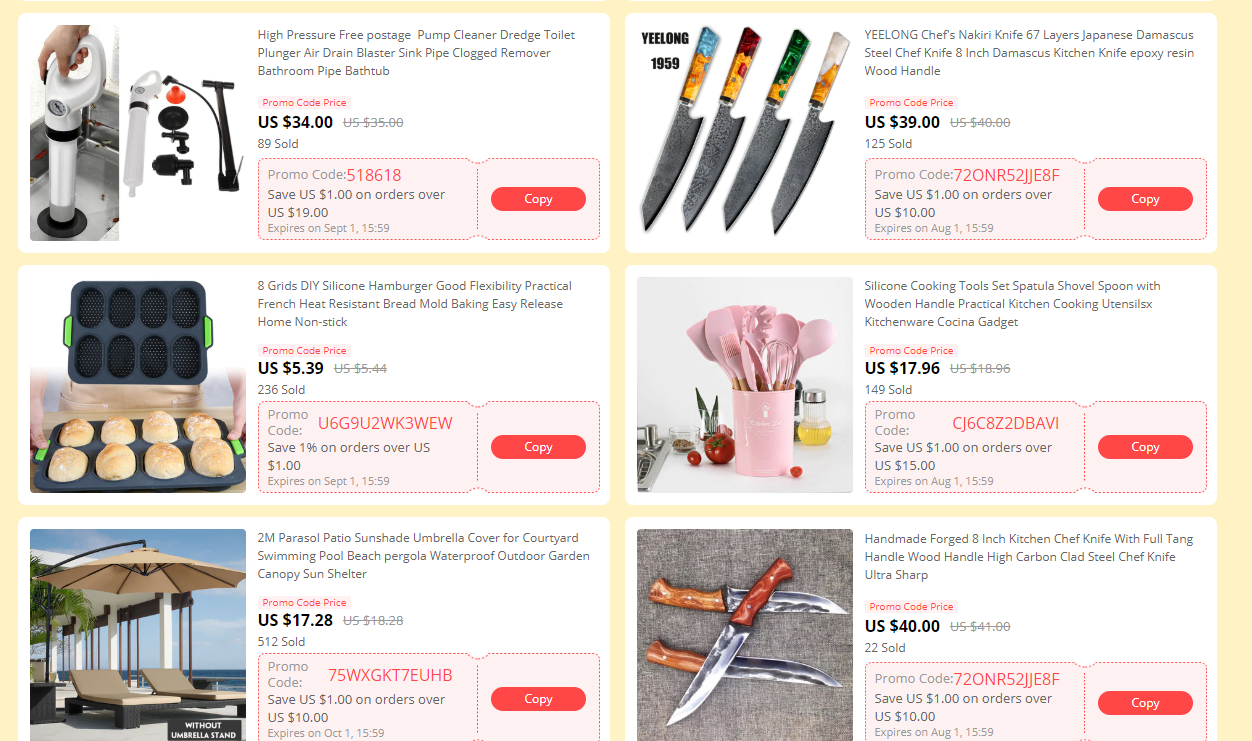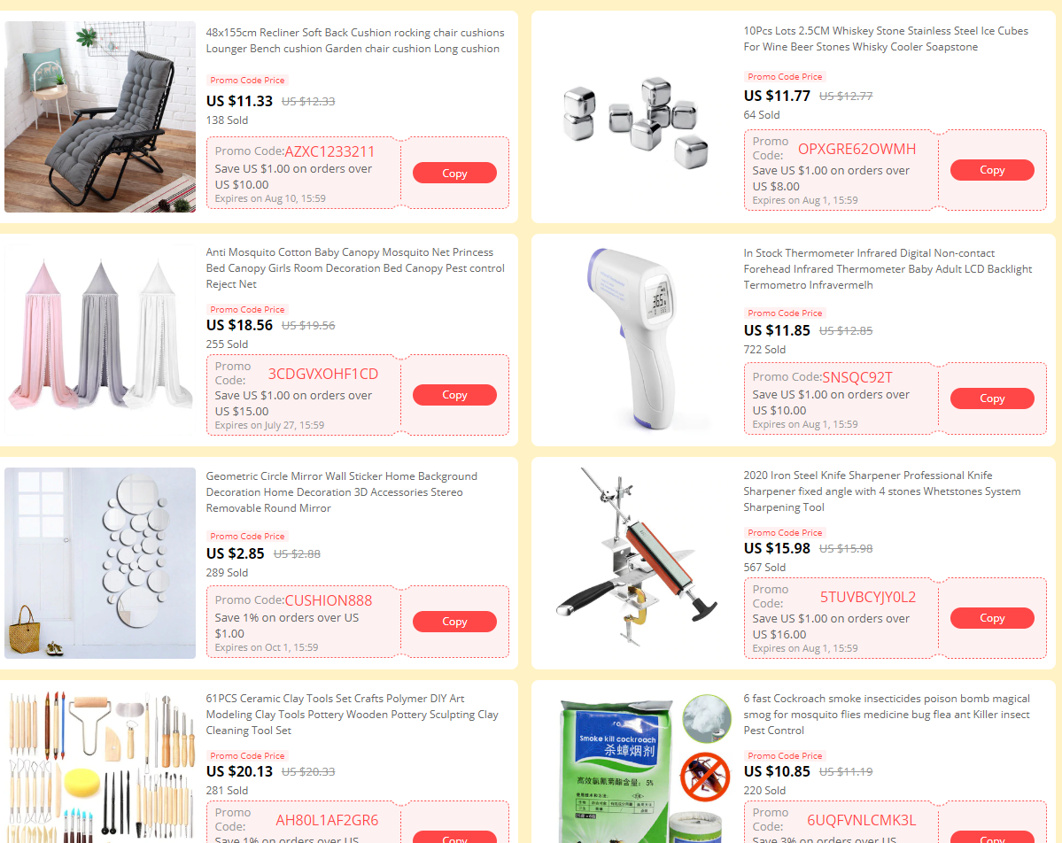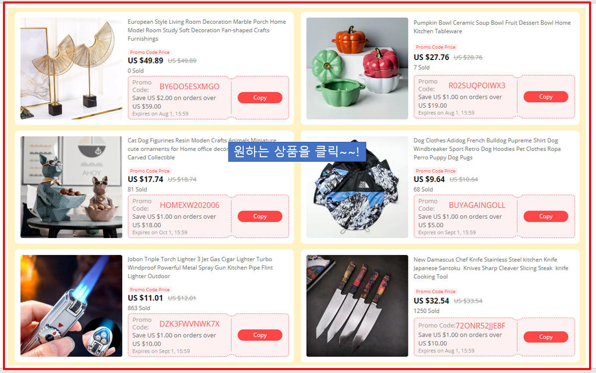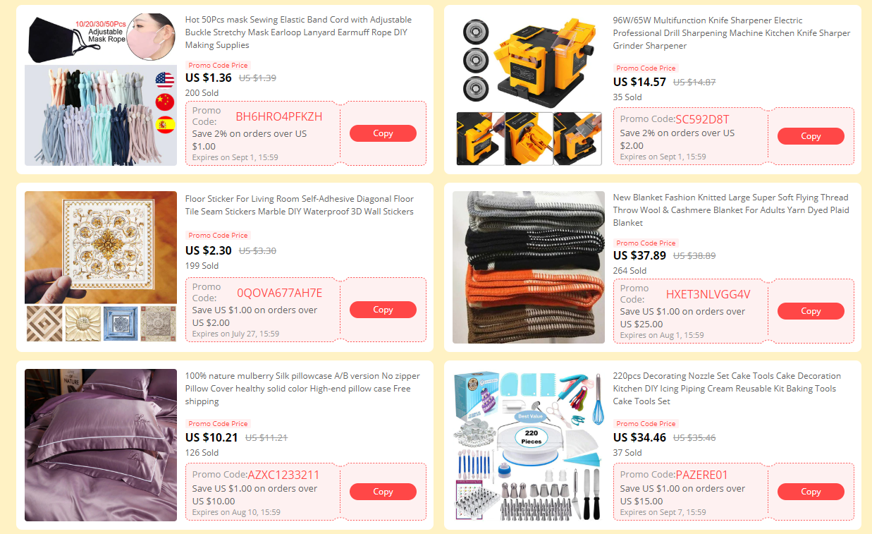 알리익스프레스는 상품별 카테고리별로 프로모션코드가 다르기 때문에 상품에 맞는