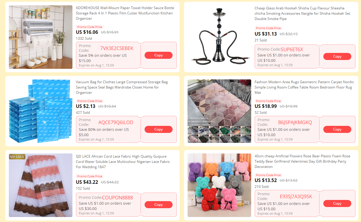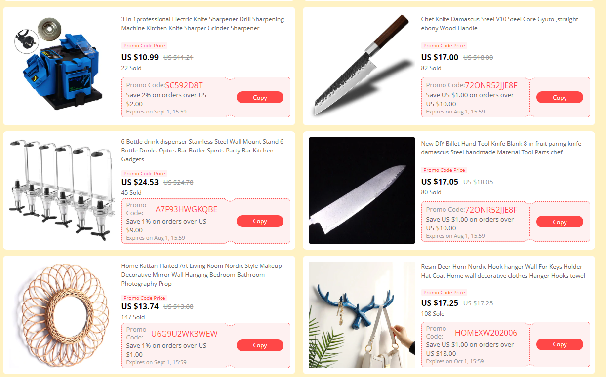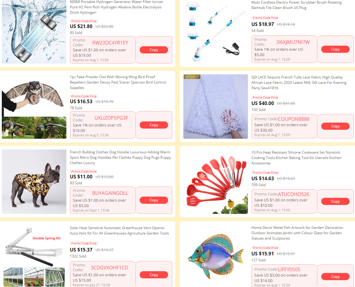 알리익스프레스는 상품별 카테고리별로 프로모션코드가 다르기 때문에 상품에 맞는