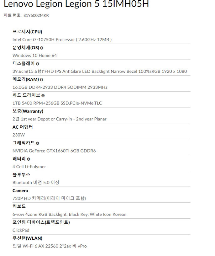 레노버 게이밍노트북 리전 Legion은 사양도 프리미엄 사양이라서,