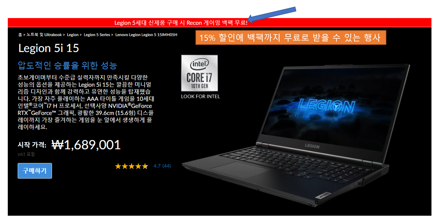 Lenovo 레노버 할인코드 게이밍 리전 노트북 구매시 백팩, 마우스, 헤드셋 증정 할인 쿠폰 코드 Legion LVKOREA 포스팅은 제휴마케팅이 포함되어 있습니다.