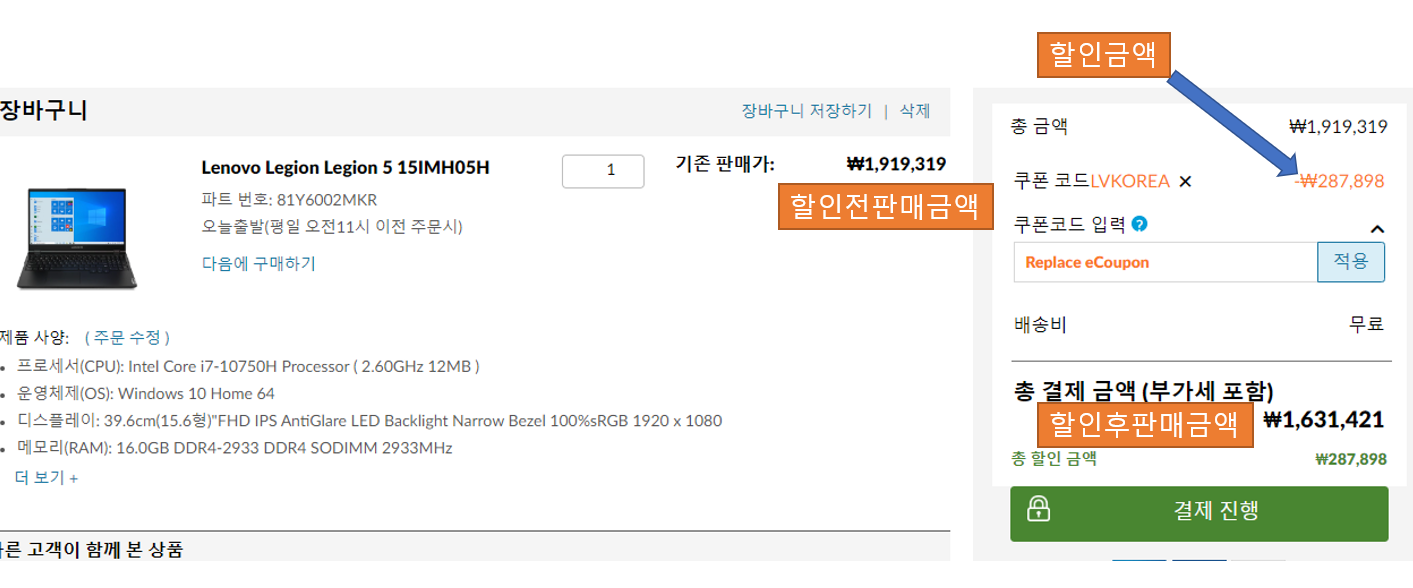 레노버에서 할인코드와 함께 게이밍 노트북 리전 Ligion을 구매시