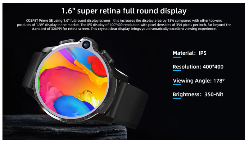 KOSPET PRIME SE 4G Vo-LTE smart watch with 1.6 inch screen Face ID 1260mAh Dual cameras 1GB+16GB Ceramic Android IP67 Men Sport