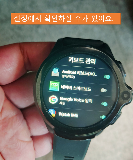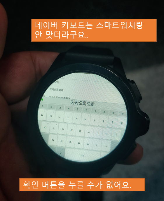 하지만..네이버키보드는 스마트워치랑은 크기가 않맞아서 확인을 누를 수가 없어요.