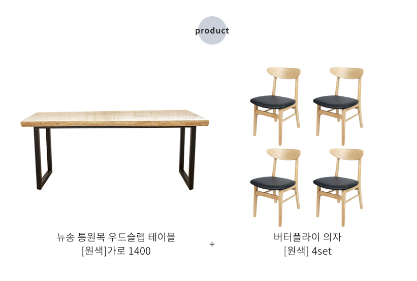 뉴송통원목 테이블 + 버터플라이의자 4개의
