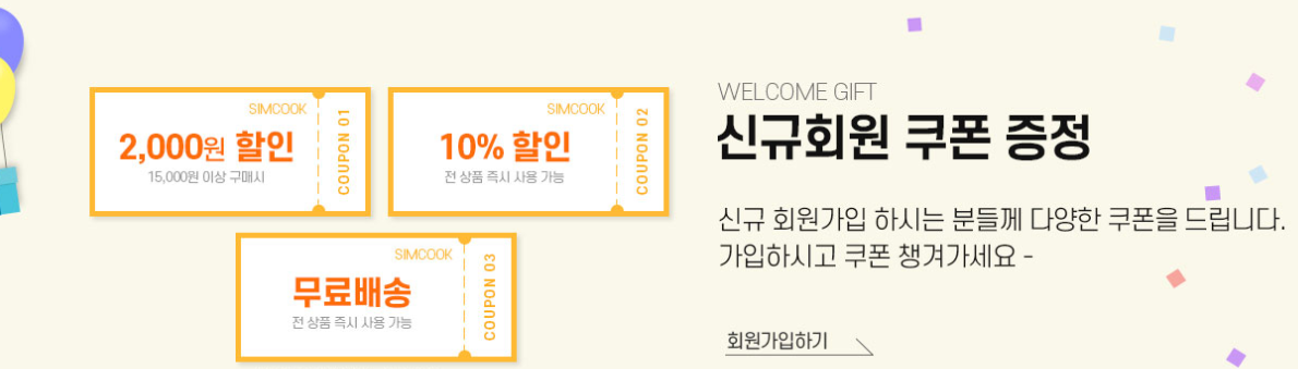 회원가입만해도 다양한 쿠폰을 증정하는 행사를 진행하고 있어요.