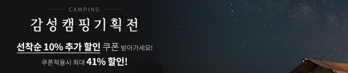 심쿡에서는 할인코드외에도 감성캠핑기획전을 진행하고 있어서,