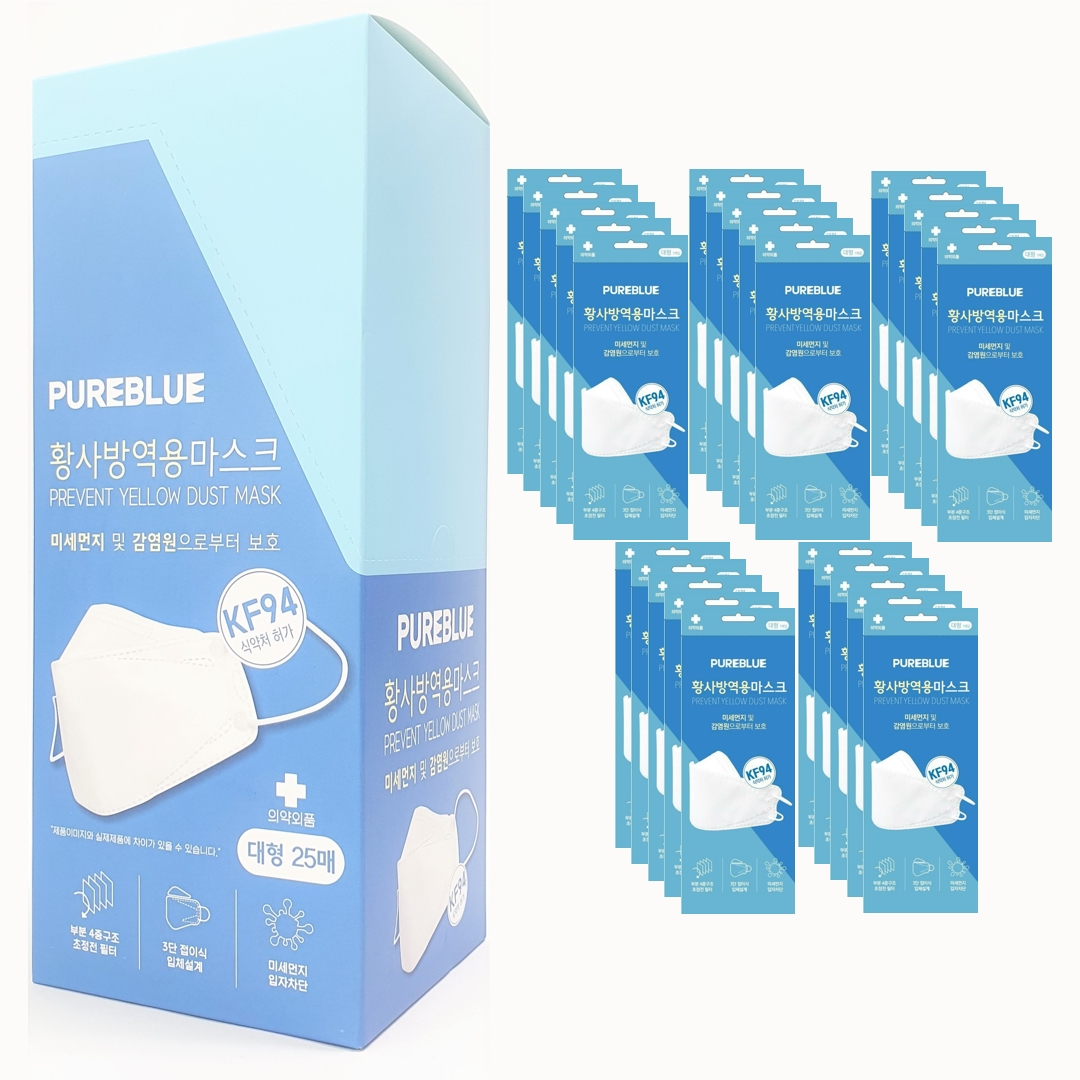 #퓨어블루 #황사방역용 #마스크 #화이트 #대형 #KF94, #1개입, #25개 #마스크