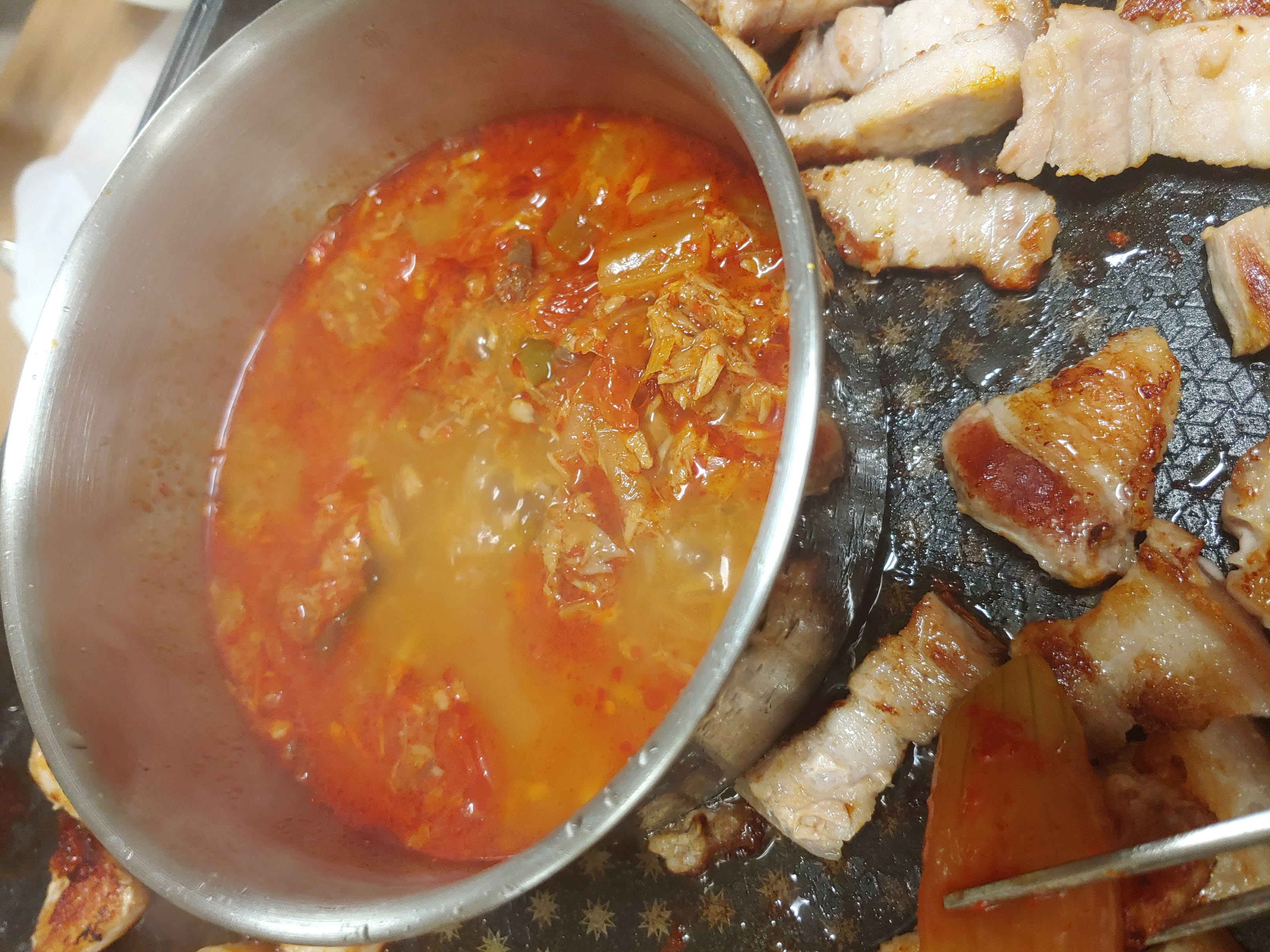 전 파김치와 삽겹살위주로 흡입을 했어요.