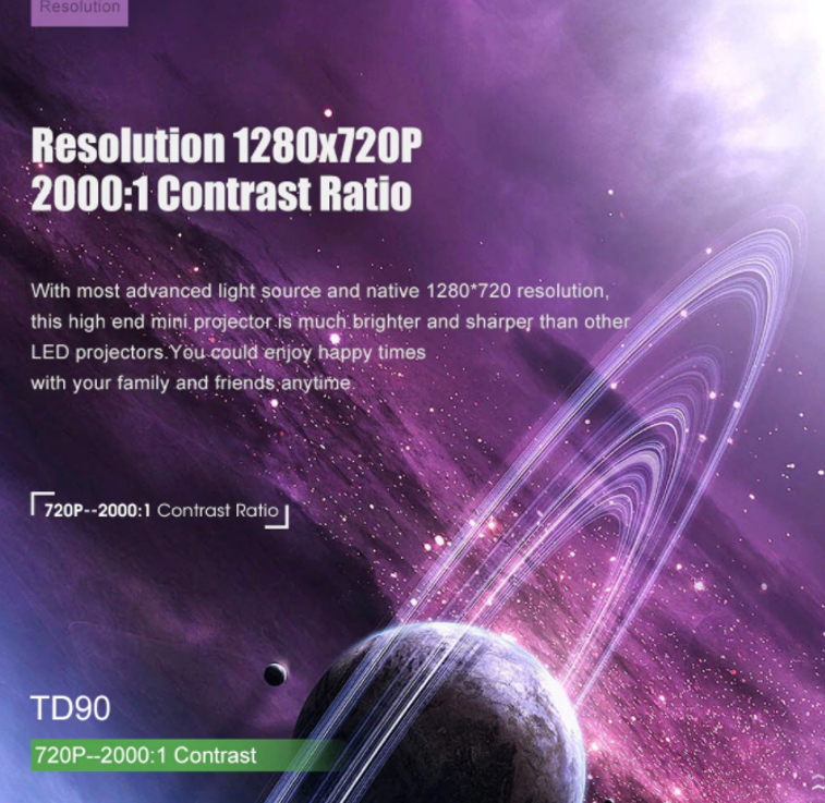 Native Resolution 1280x720P , Contrast Ratio 2000:1