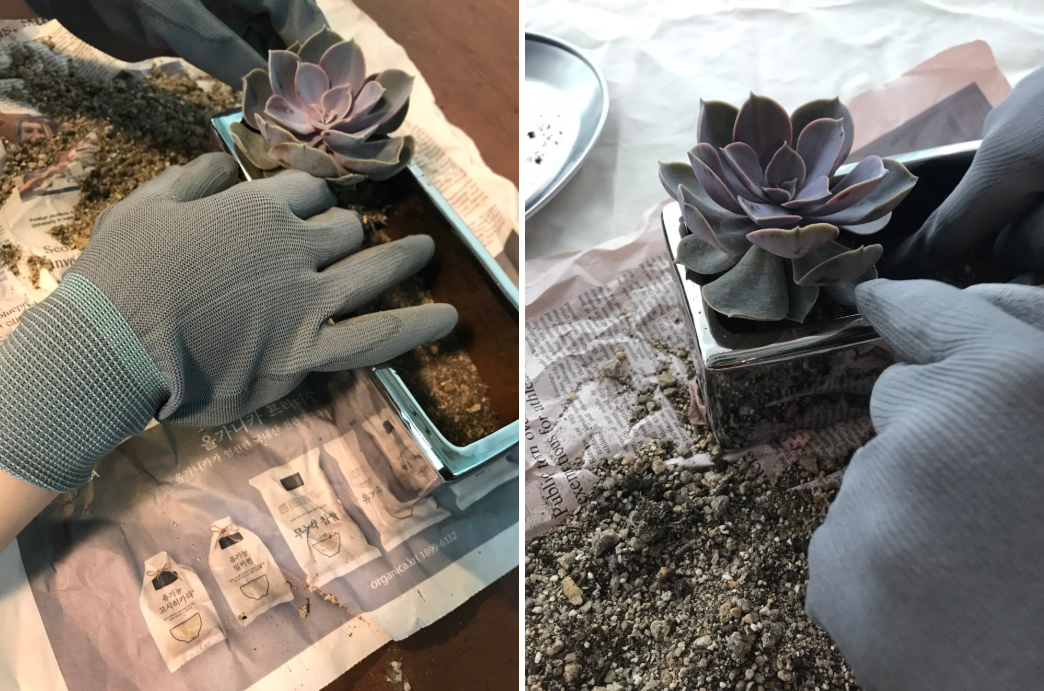 이번에는 흙과 다육식물을 가지고 미니 가드닝하는 방법을 소개해드릴게요.