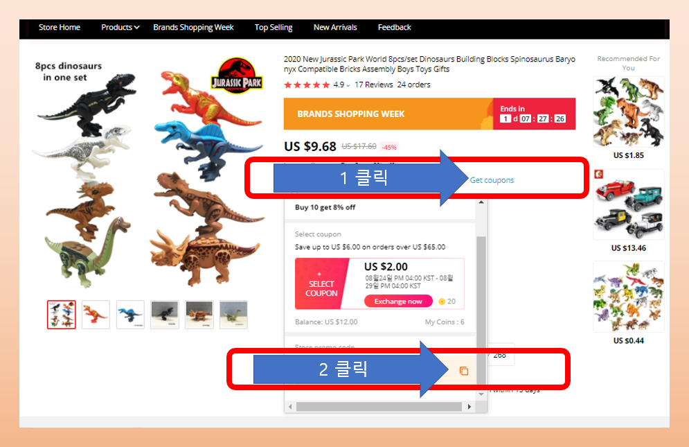 이번 포스팅에서는 알리익스프레스 프로모션코드 사용방법과 이번에 구매한 공룡인형 장난감 후기를