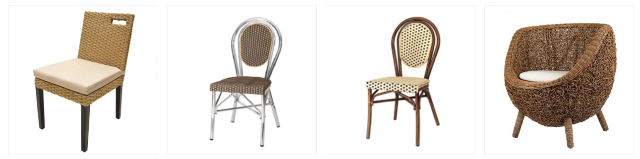 보여드리는 상품들은 유러피안 감성의 실내외 겸용 라탄 체어에요.