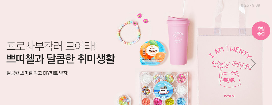 쁘띠첼 상품을 구매하시는 분들 중 50분께 스무살 쁘띠첼 DIY키트를 드리는 행사에요.