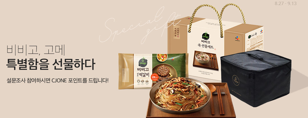 비비고, 고메 제품관련 설문조사에 참여하시면 CJ ONE포인트를 드리는 행사에요.
