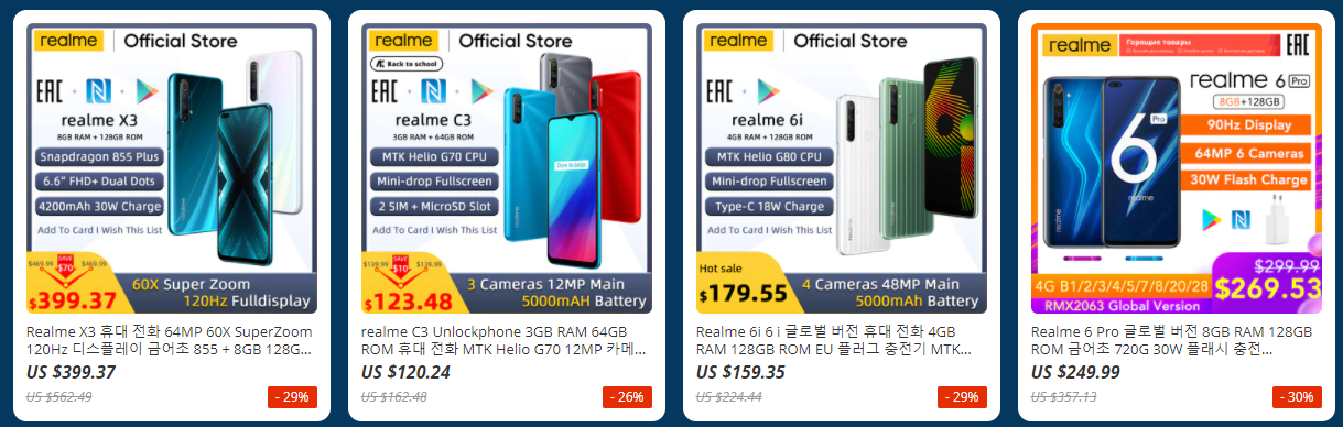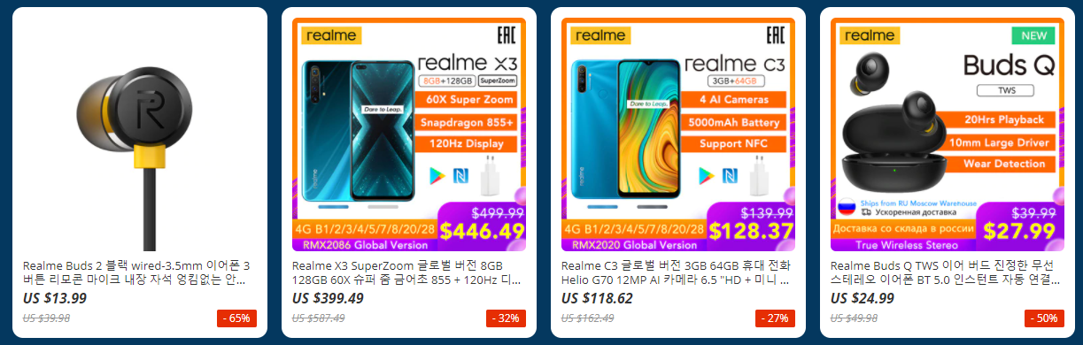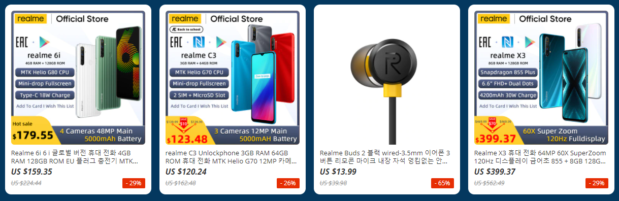 알리익스프레스에서 Real ME 리얼미 스마트폰