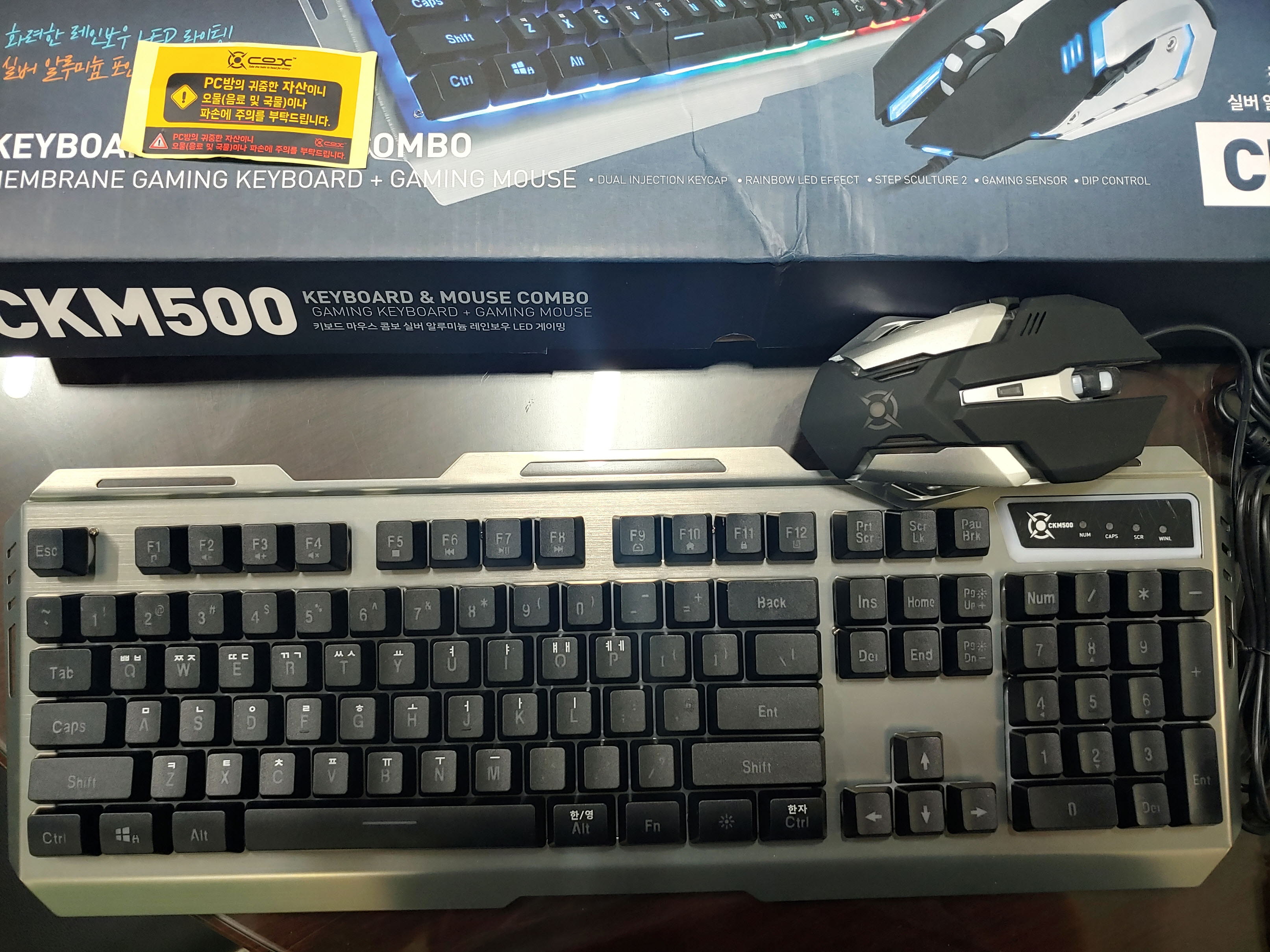 COX 멤브레인 실버 알루미늄 게이밍 유선 키보드 + 마우스세트