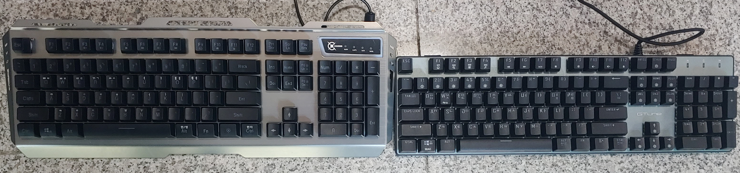 소리는 한성컴퓨터의 GTune Rainbow 기계식 키보드 소리가 더 커요.