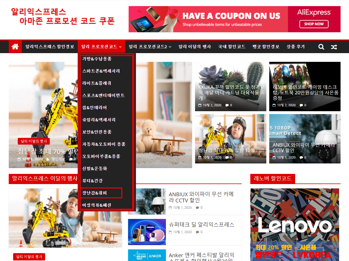 그럼 상단 메뉴 중 알리 프로모션코드, 알리프로모션코드2 라고 되어 있는 곳 중