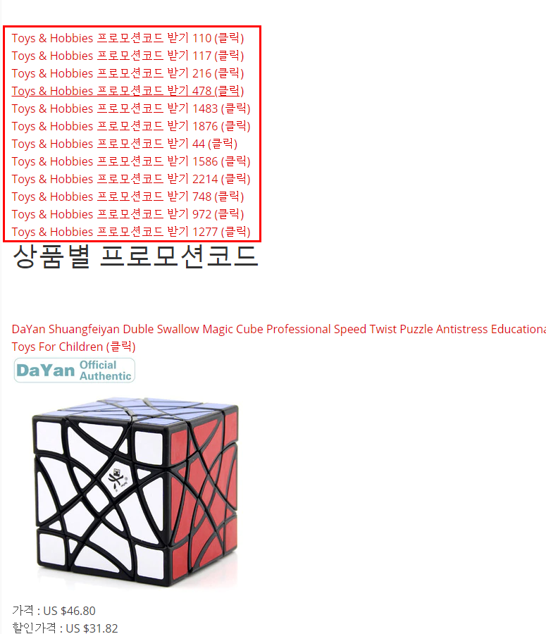 클릭하시면 아래 사진 처럼 다양한 프로모션코드를 확인 하실 수가 있어요.