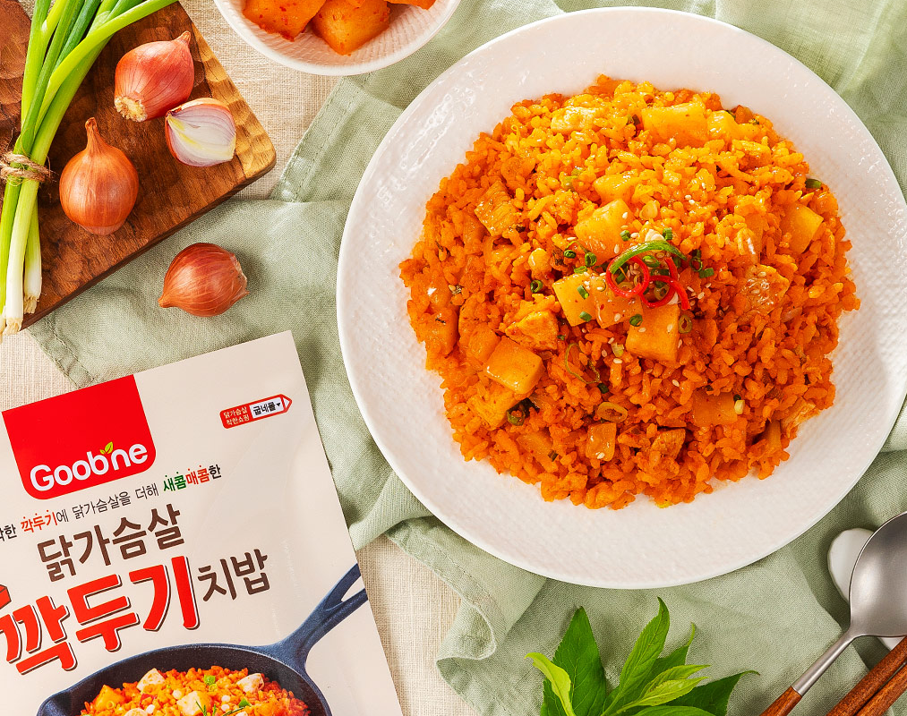 아삭한 깍두기에 닭가슴살을 더해 새콤매콤한 별미에요.