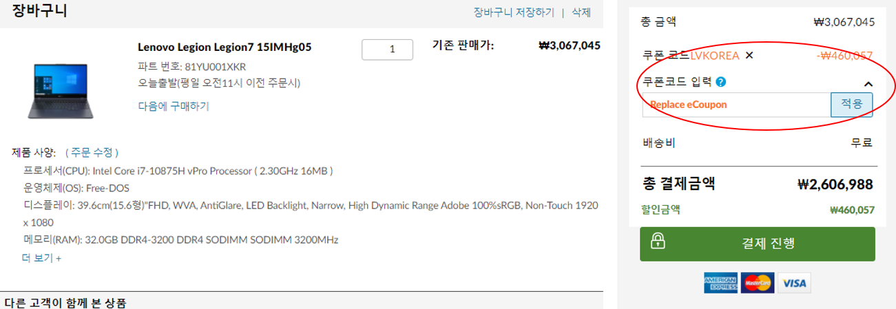 레노버 노트북을 할인코드로 가격 구매시 가격을 비교해보고,