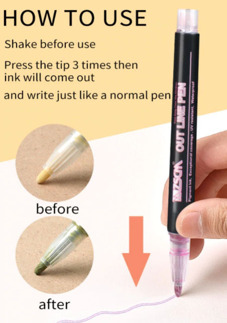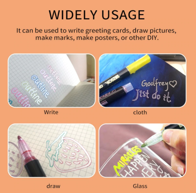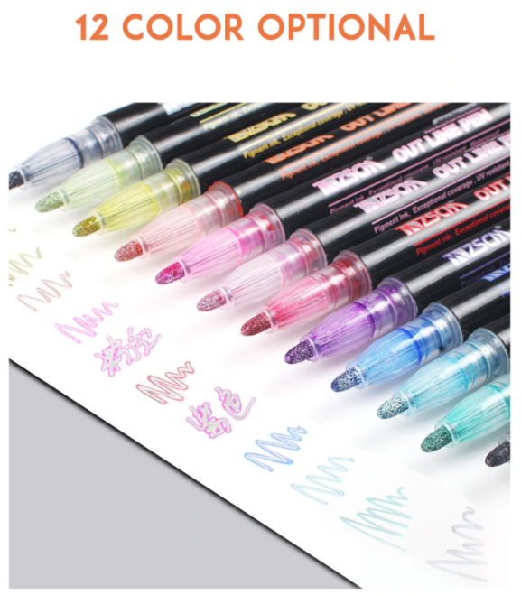 US $9.59 40% OFF|12 Colors Metallic Marker Outline Pen Glitter Colorful DIY Album Scrapbooking Marker Pen for Christmas Drawing