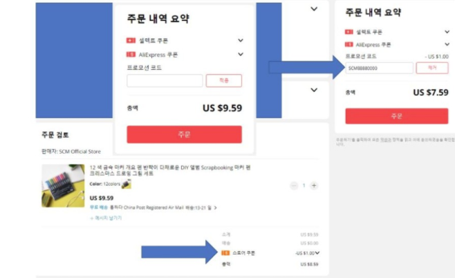 캡쳐한 사진 처럼 프로모션코드와 프로모션쿠폰을