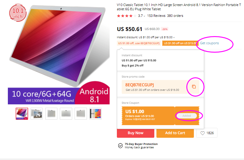 그럼 이상 10인치 저렴한 태블릿 할인받기,알리익스프레스 프로모션코드 와 쿠폰 동시 사용 포스팅을 마치겠습니다.