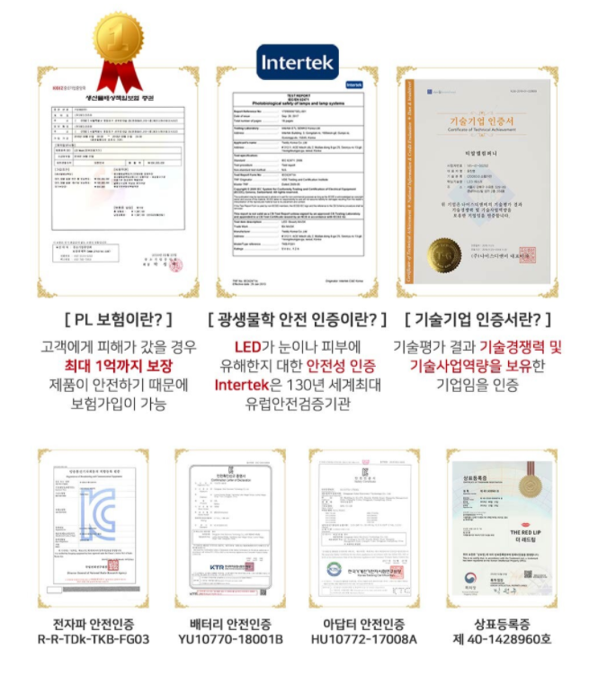 intertek 광생물학 안전인증을 획득하여 피부, 눈 안전하게 사용이 가능하다는 것이