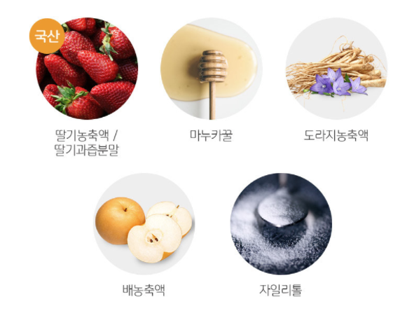 딸기 농축액, 마누카꿀, 도라지농축액을 한통에 남았다고 해요.