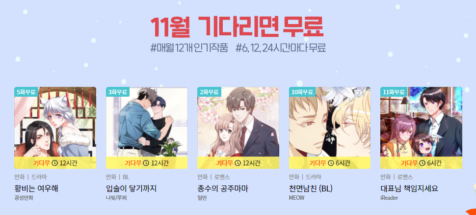 로맨스,BL,판타지 장르특화! 웹툰,만화,소설! 매일무료,무료웹툰,만화,소설!