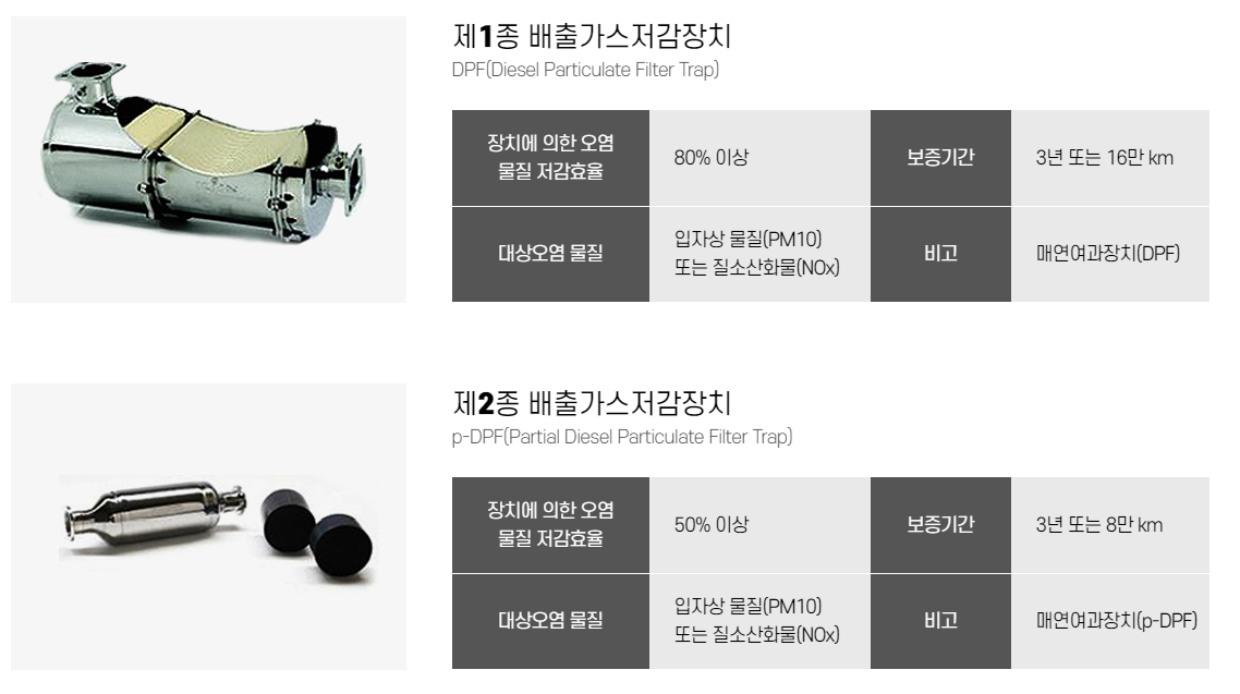 배출가스 저감장치(DPF, p-DPF) 부착 차량