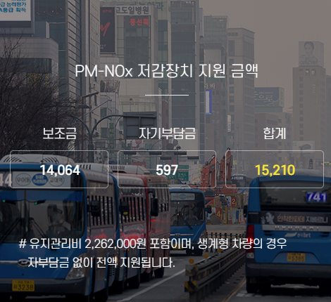 버스 및 화물트럭 등 대형 경유차량을 대상으로 PM을 저감하는 기존의