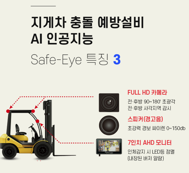 지게차 전.후방에 각각 카메라를 설치해 보다 안전적으로 사용이