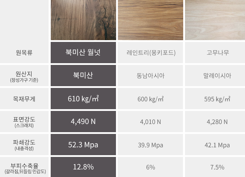창성가구의 북미산 월넛집성 테이블은