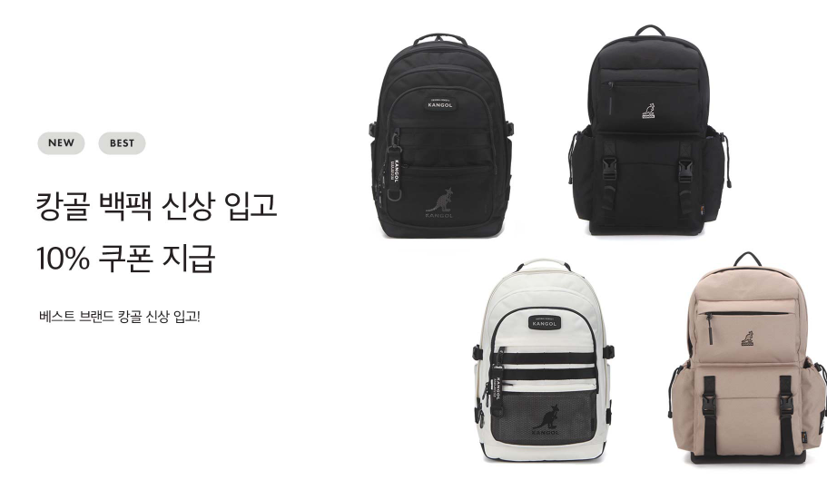 캉골 백팩을 10% 쿠폰을 받아서 구매하시는 것도
