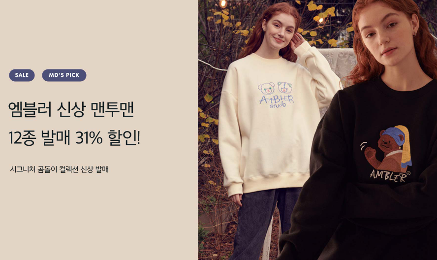 재고가 아닌 신상 맨투맨 12종을 31% 할인된 가격으로 만나볼 수가 있어요.