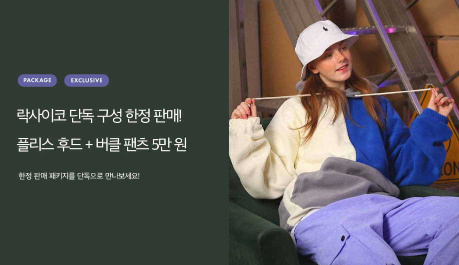 락사이코의 단독 구성인 플리스 후드와 버클팬츠 세트를