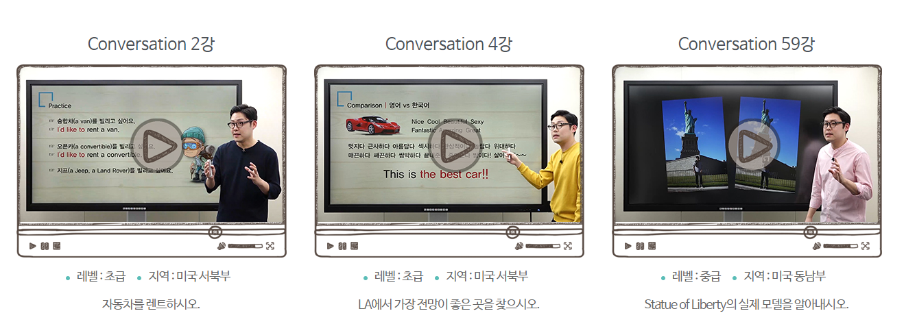 단순 주입식 영어가 아닌 체험을 하면서 영어회화 실력을 늘릴수 있는 플랫폼이에요.