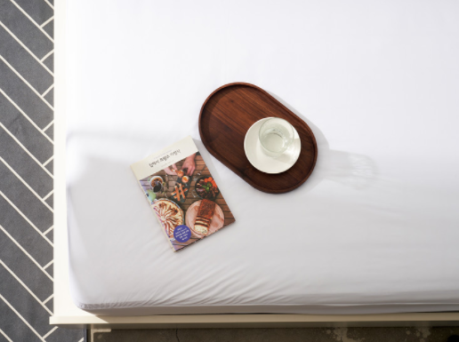 매트리스에 화이트 톤 방수커버로 씌웠어요.