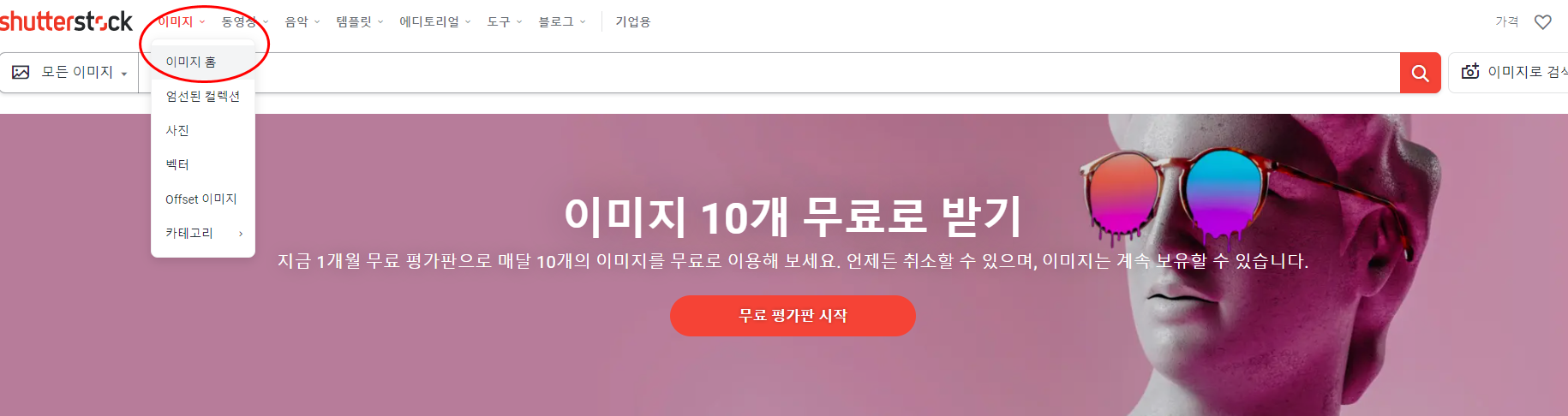 - 셔터스톡 이미지 및 동영상 전 제품 (연간 구독권 포함)