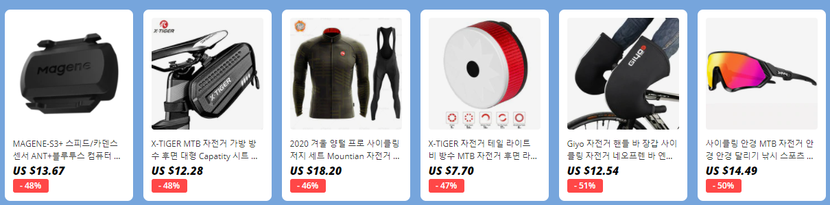 자전거, 사이클, 스키, 스노보드 등 다양한 상품들이 준비되어 있어요.