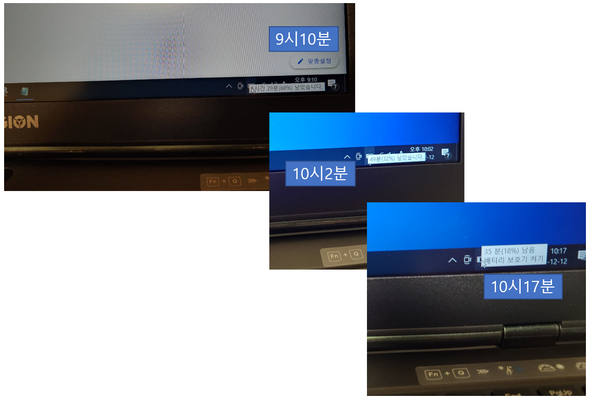 그럼 이번에는 배터리로만 얼마나 가는지 확인해봤어요.