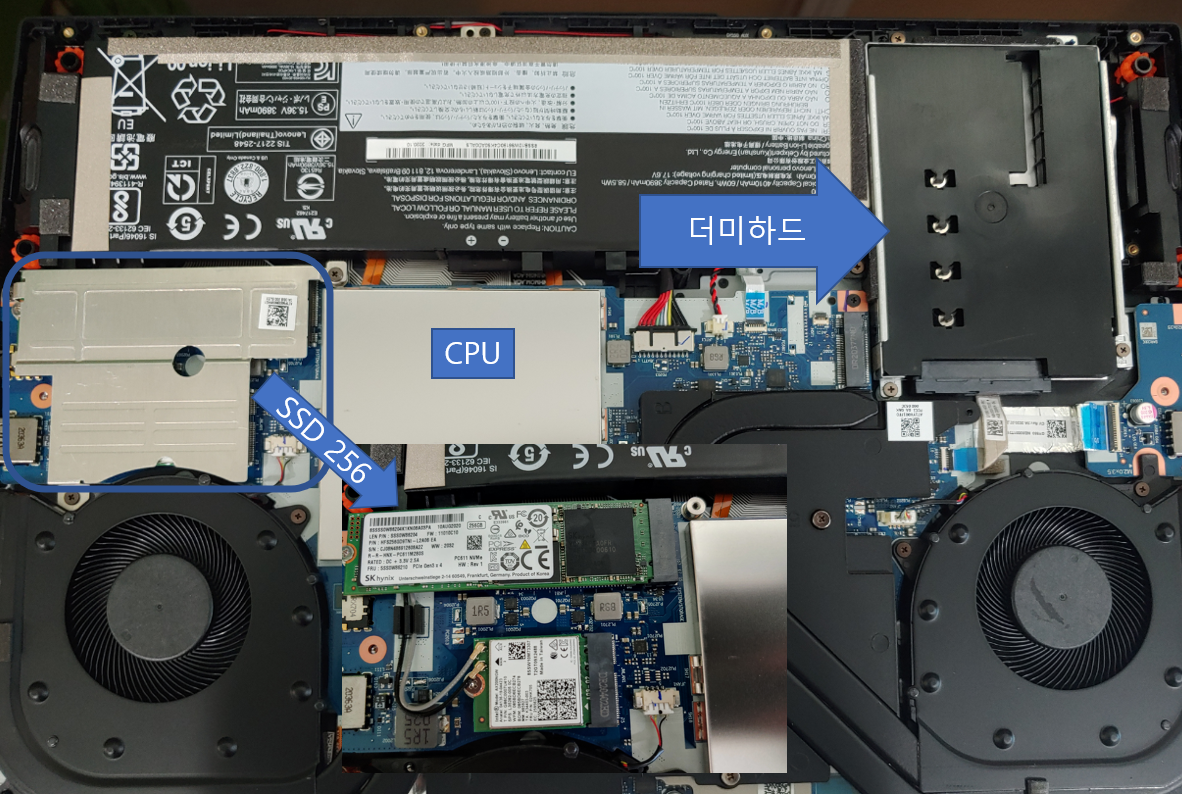 하드는 SSD256이지만, 저는 사용하던 SSD 512가 있어서